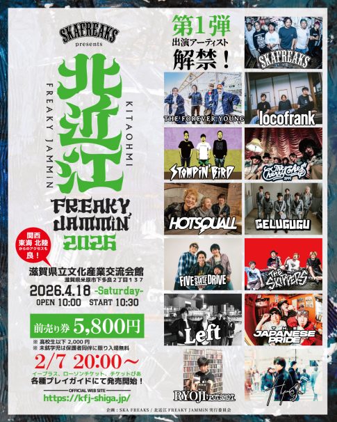 NEWS“SKA FREAKS presents 北近江 FREAKY JAMMiN’ 2026” 2026/4/18(土) 滋賀県立文化産業交流会館 SKA FREAKS / FIVE ST...