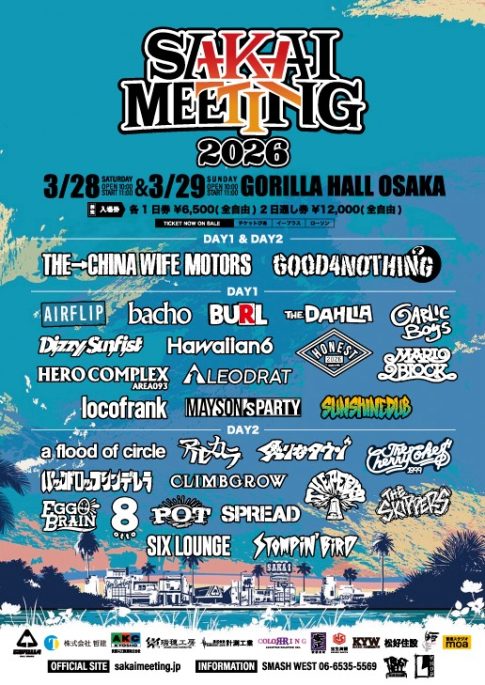NEWS“SAKAI MEETING 2026” 2026.03.28(土) GORILLA HALL OSAKA 出演:GOOD4NOTHING / THE CHINA WIFE MOTORSAIRFL...